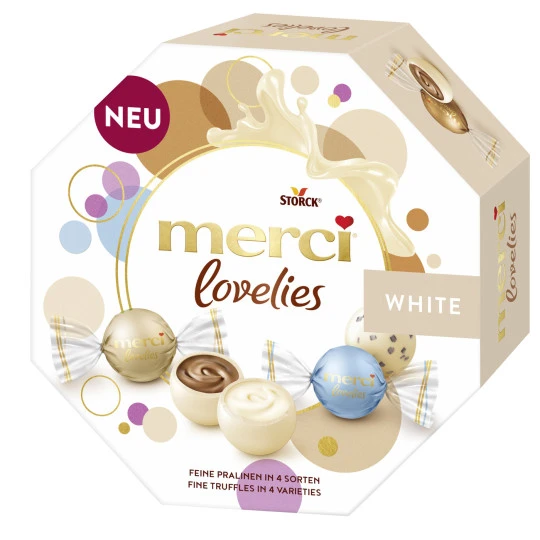merci lovelies sind köstlich gefüllte Kugelpralinen in drei raffinierten Mischungen – perfekt um sie zusammen mit den Liebsten zu genießen.